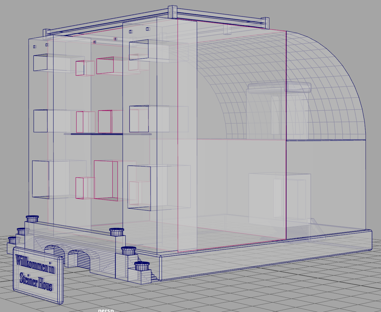 These are my adventures on Maya. Boy, did I have fun! The first project I present to you is a model of a building named Steiner House. The idea was to recreate the structure from a picture, but I wanted details, so I used an orthographic reference. For the second project, I designed a lightsaber inspired by that famous franchise movie where people fight using lightsabers. I got my inspiration from cheap plastic toys that you get at an arcade or a fair. Anyway, this is just the beginning of my Maya pilgrimage.